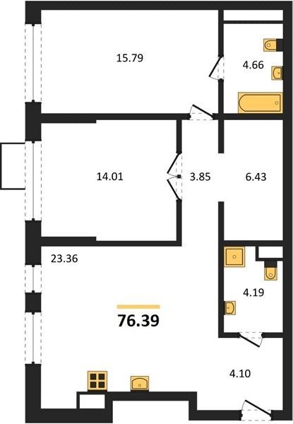 Площадь от 76.39 м2