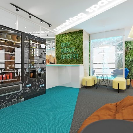 На верхнем этаже комплекса будет коворкинг-зона с панорамными видами на водохранилище, с вендинговыми аппаратами и разделенными зонами. Если вам нужно поработать, а дома мешают дети или пришли гости, вы можете провести время в коворкинге. Также в доме будет прачечная самообслуживания и гладильная с прессами. А на первых этажах разместятся два небольших фитнес-зала.
