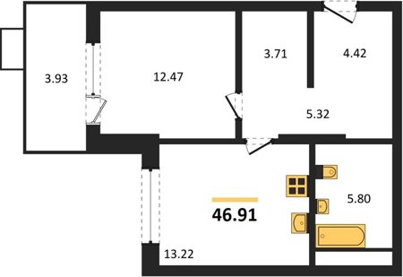 Площадь от 46.91 м2