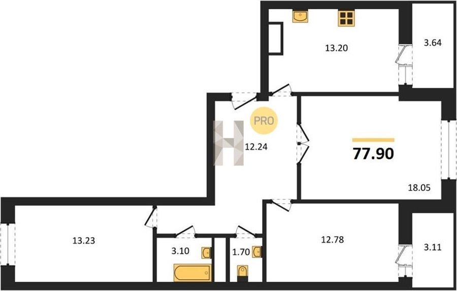 Площадь от 77.9 м2
