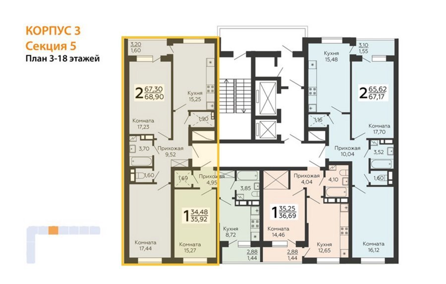 Площадь от 68.9 м2