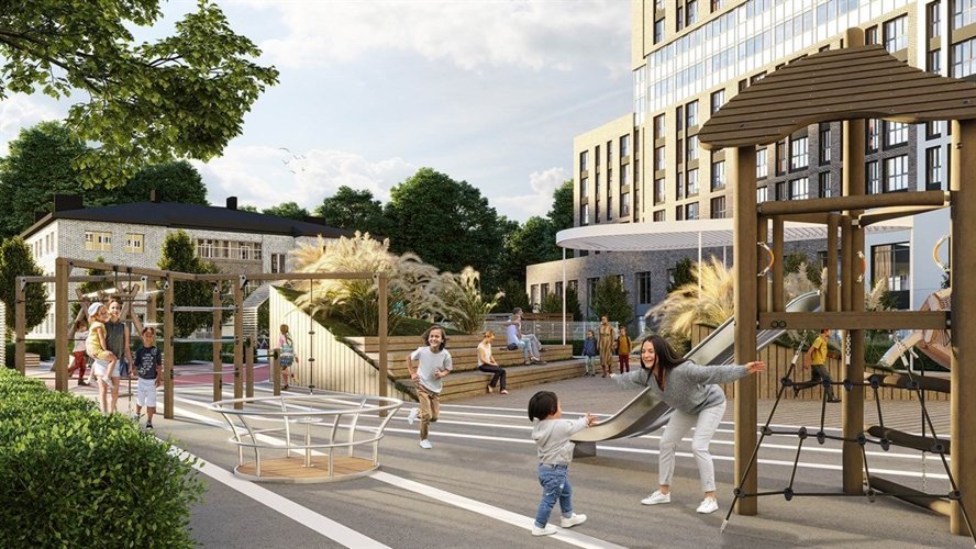 В пяти минутах от ЖК есть прекрасная школа , где очень удобно отправлять своих деток в школу и не переживать за них !!!