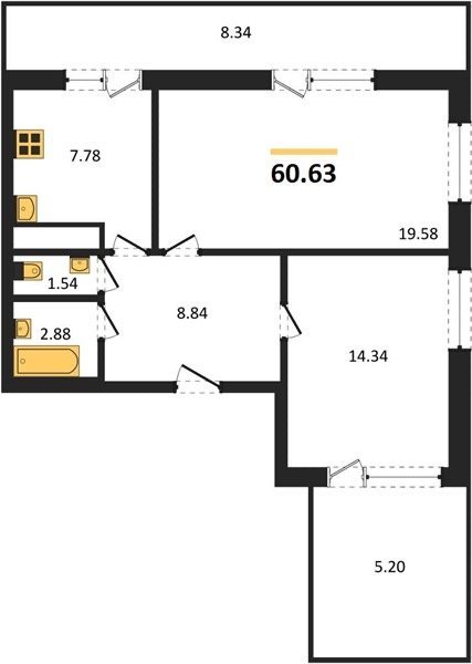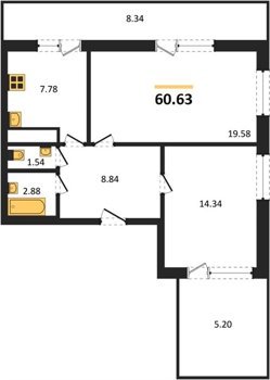Площадь от 60.63 м2